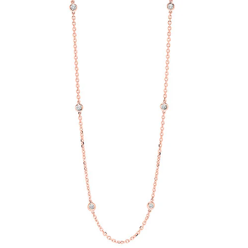 This luxurious, shimmering necklace is the epitome of tasteful fashion-forward design, and available in your favorite precious metal - 14K White, Yellow or Rose Gold. Playful and polished, this diamond gold necklace with its lightweight layering potential is ideal for accentuating other fine gold pieces. An array of round brilliant cut diamonds, available in 0.25, 0.50, 0.75, 1.00, 1.50, or 2.00CTW, are bezel set in circular frames and spaced in elegant intervals along the sturdy chain. A modern nod to classic station style jewelry, this diamond gold necklace is guaranteed to bring a touch of sophistication to your look. With a diamond clarity of I2-I3 and a color of H-K, it's a gorgeous accessory for any occasion.