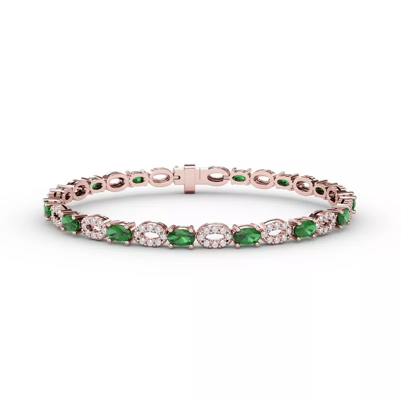 This interchanging emerald and diamond bracelet comes in a variety of material types like 14k white gold, yellow gold, rose gold and can be customized with your jeweler. Fana gemstone bracelets are perfect for that special woman in your life.