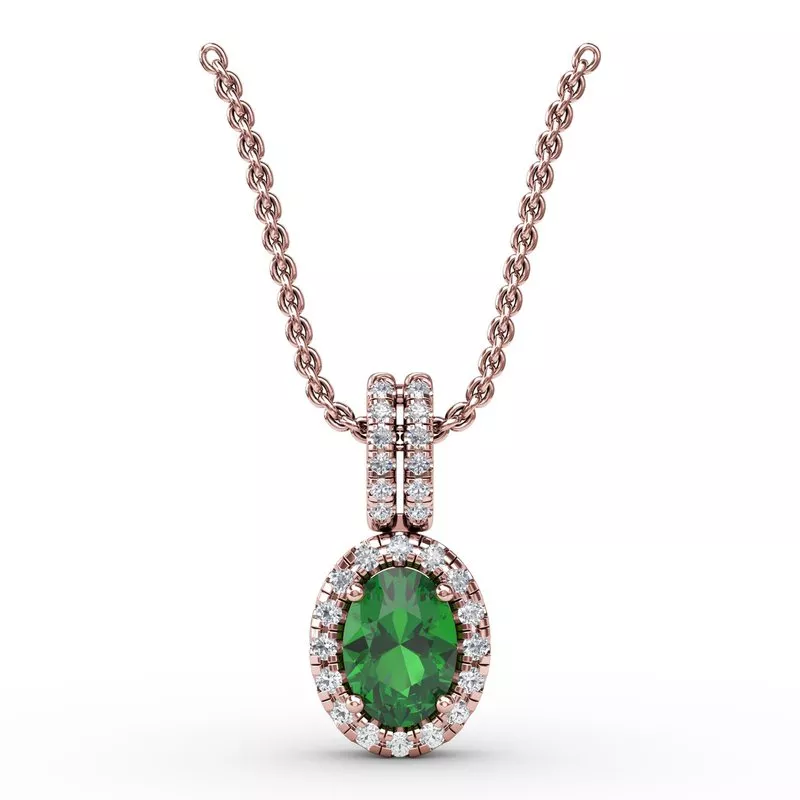 Fana Emerald & Diamond Halo Pendant Necklace