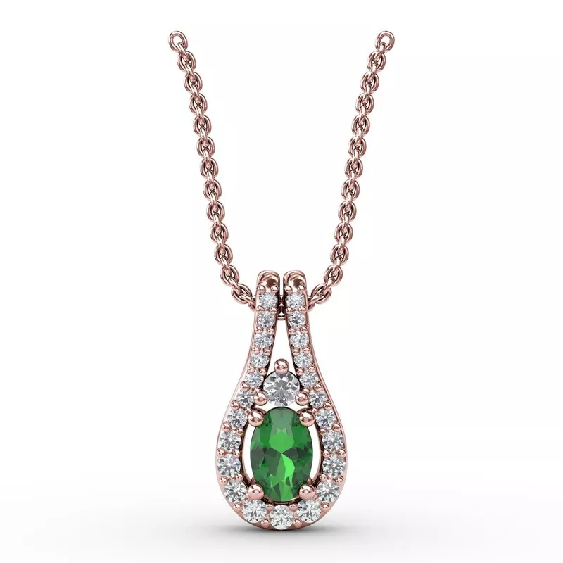 This Fana gemstone necklace & pendant comes in a variety of material types like 14k white gold, yellow gold, rose gold and can be customized here.  With a vast selection & the utmost of quality, call International Diamond Center for all your Fashion Diamond & Color Gemstone needs.